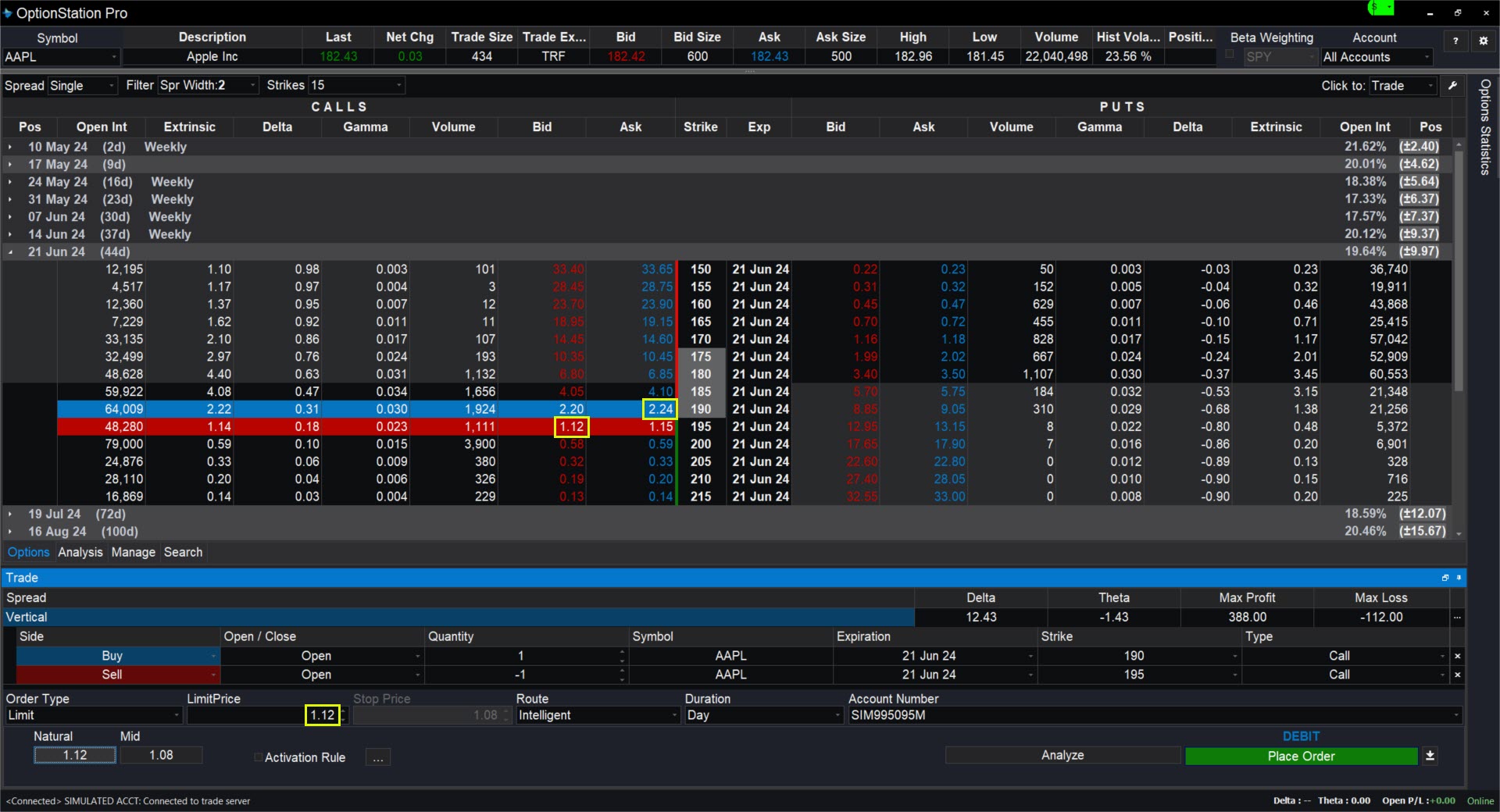 Second, vertical spreads have limited profits. If prices move move above the higher strike in a bullish trade, the spread’s width caps its potential value. Owning shares or simple calls, on the other hand, have infinite potential upside. (But shares and simple calls also have more risk because they cost more.)