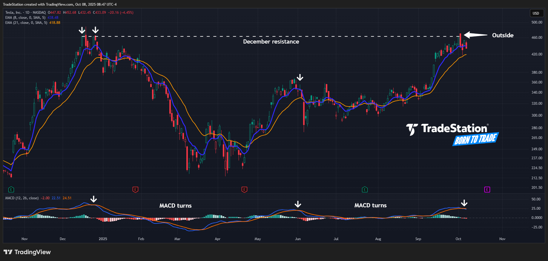 Tesla ended the third quarter on a strong note, but some traders may see risk of the EV maker stalling.