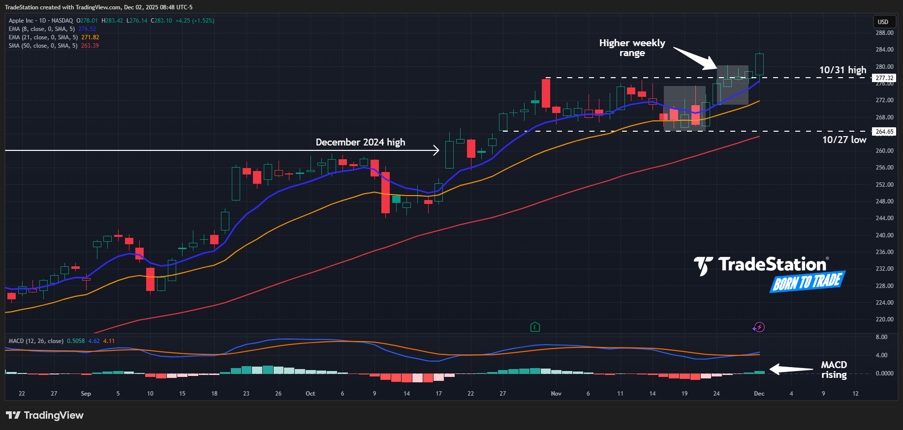 The first pattern on today’s chart is the $260.10 level, a previous all-time high from December 2024. AAPL crossed above that price in late October and has remained there since, which could mean old resistance has …