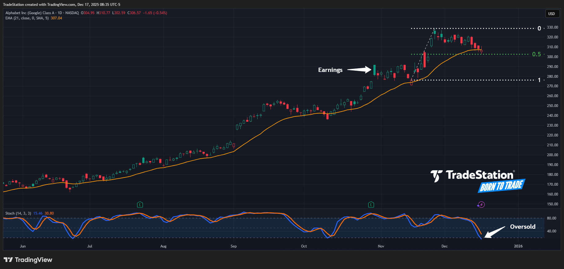 Alphabet has pulled back after hitting a new all-time high, and some traders may think it’s oversold.