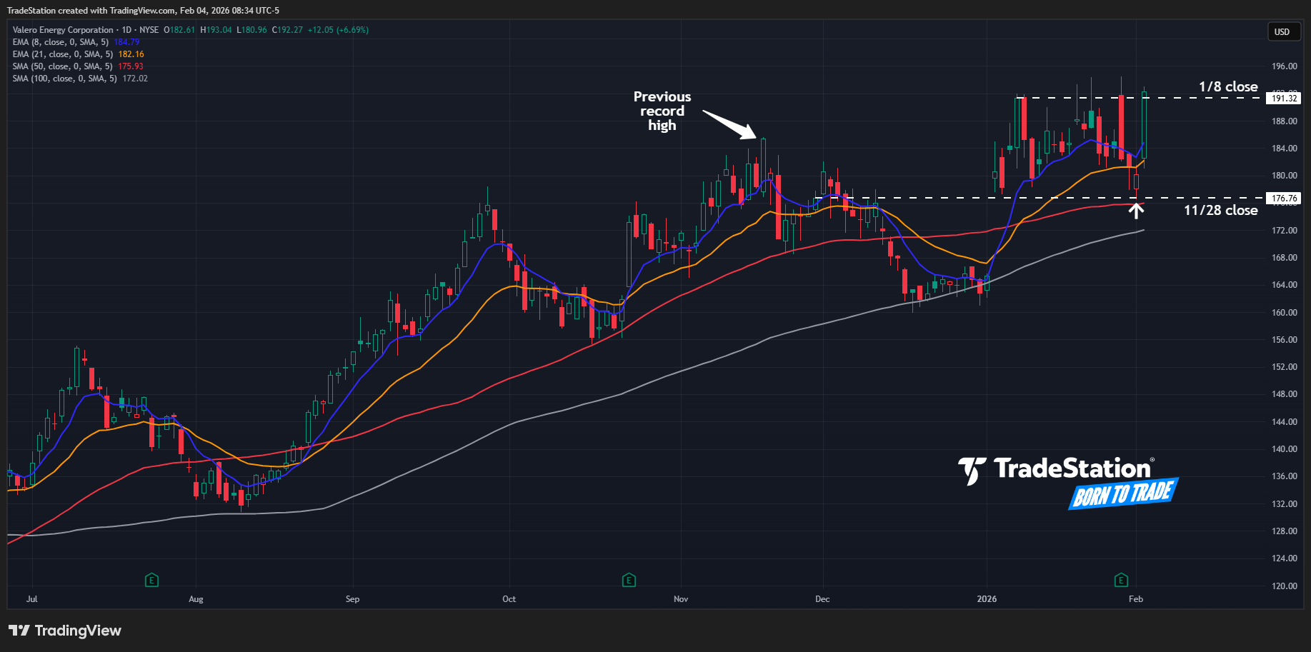 Valero Energy hit a record high in November, and some traders may expect further upside.