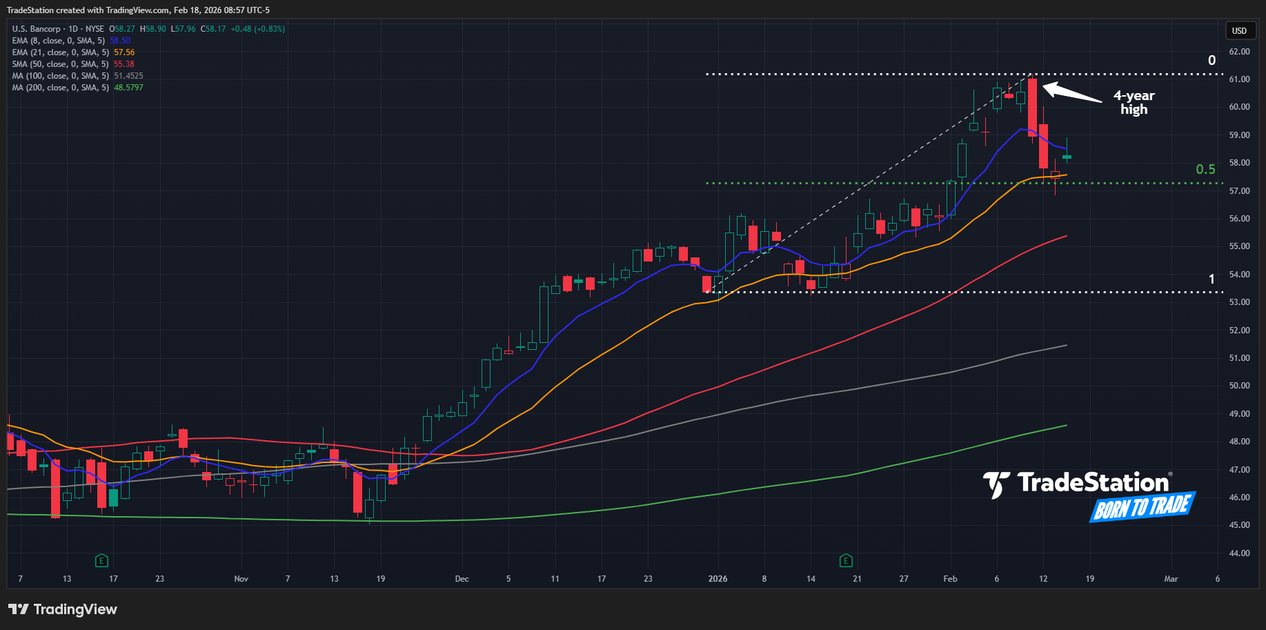 U.S. Bancorp hit a four-year high last week, and some traders may see further upside in the Upper Midwest lender.