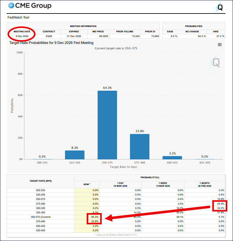 CME FedWatch tool, showing diminished odds of rate cuts by December.