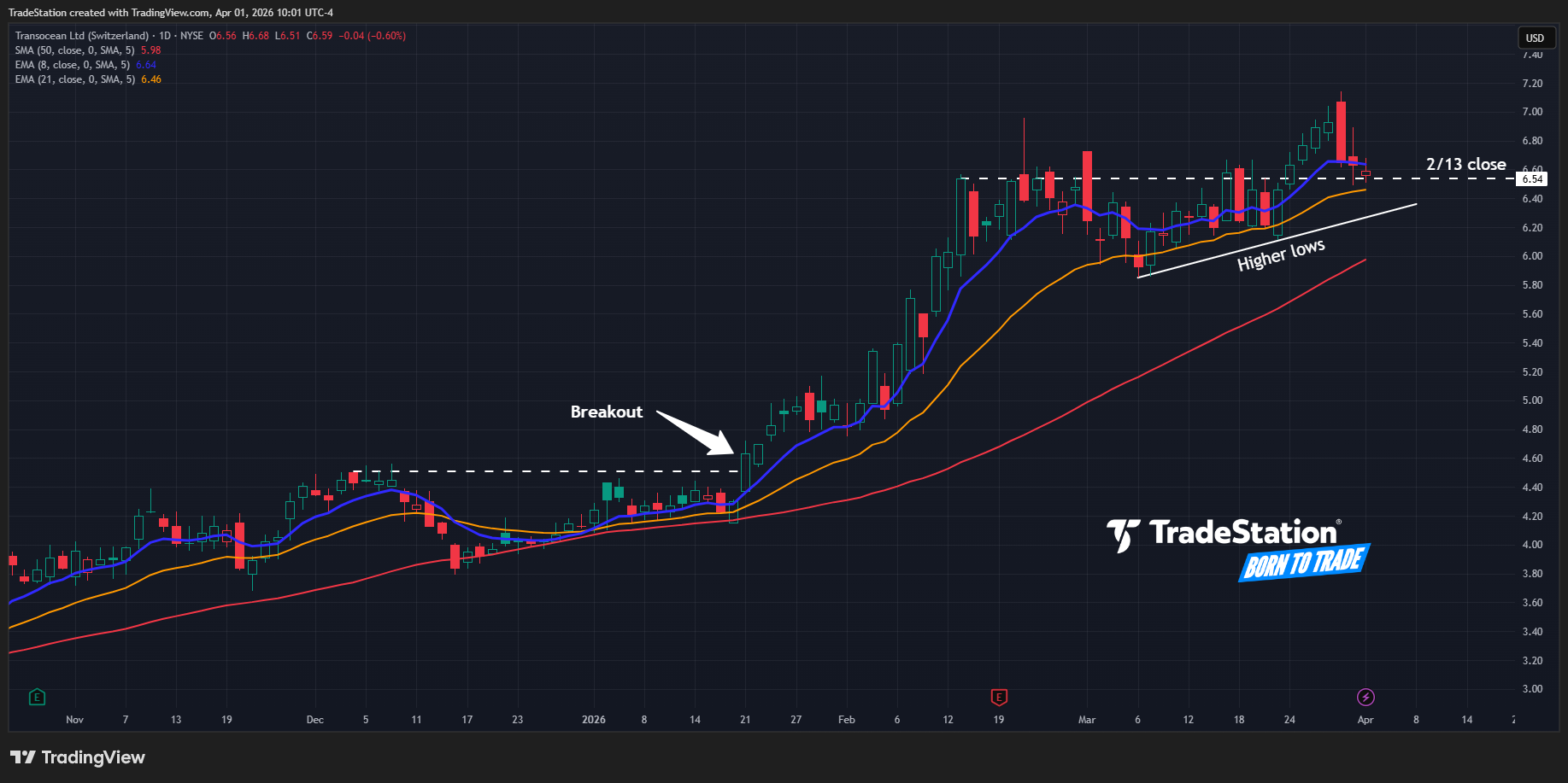 Transocean began the year with a steady rally. Now, after a brief period of consolidation, some traders may expect further gains.