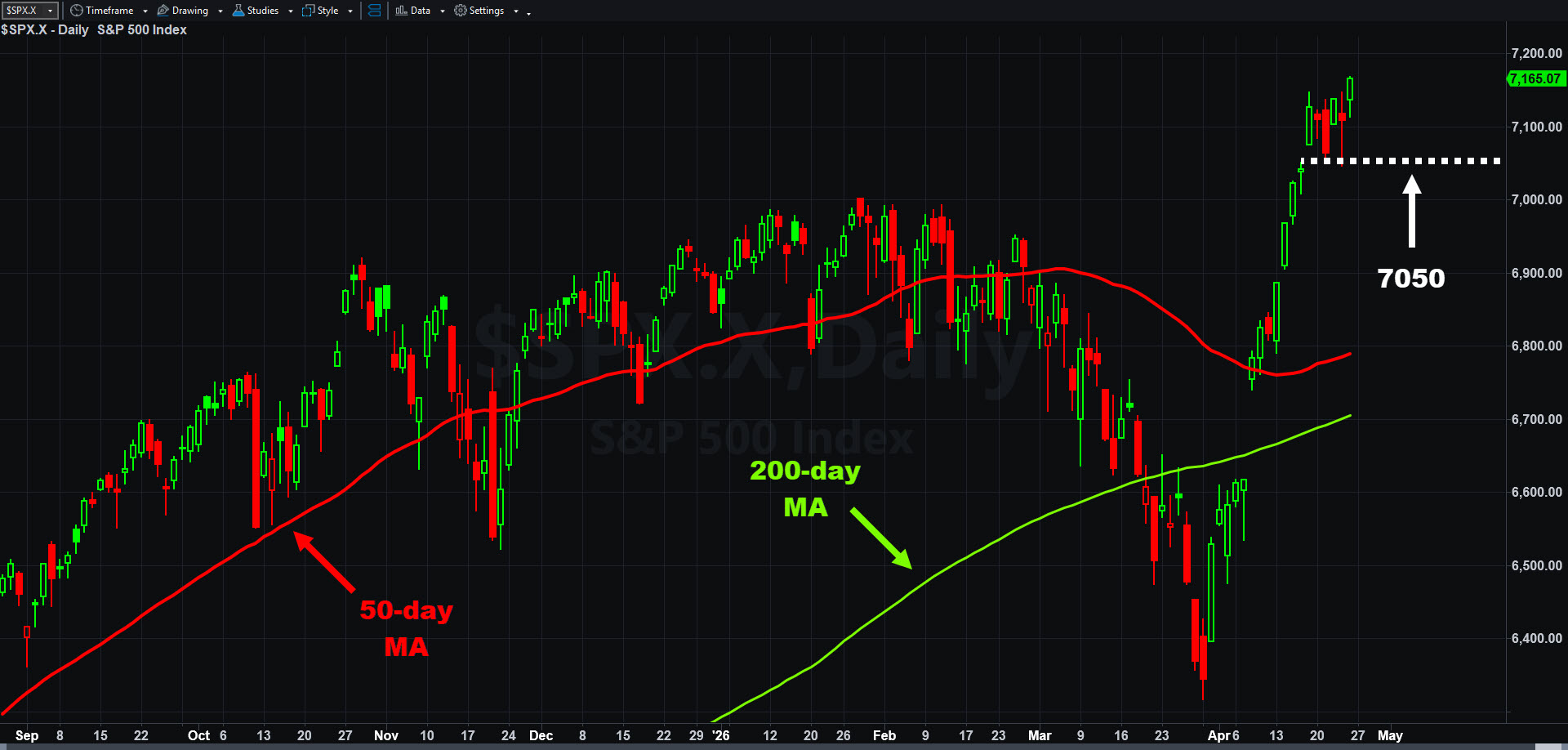 The S&P 500 rose 0.5 percent between Friday, April 17, and Friday, April 24. While the index inched to a new all-time high, most of the big moves occurred in a narrow set of companies associated with the AI trade. Chipmakers led the surge again — especially companies providing CPUs.