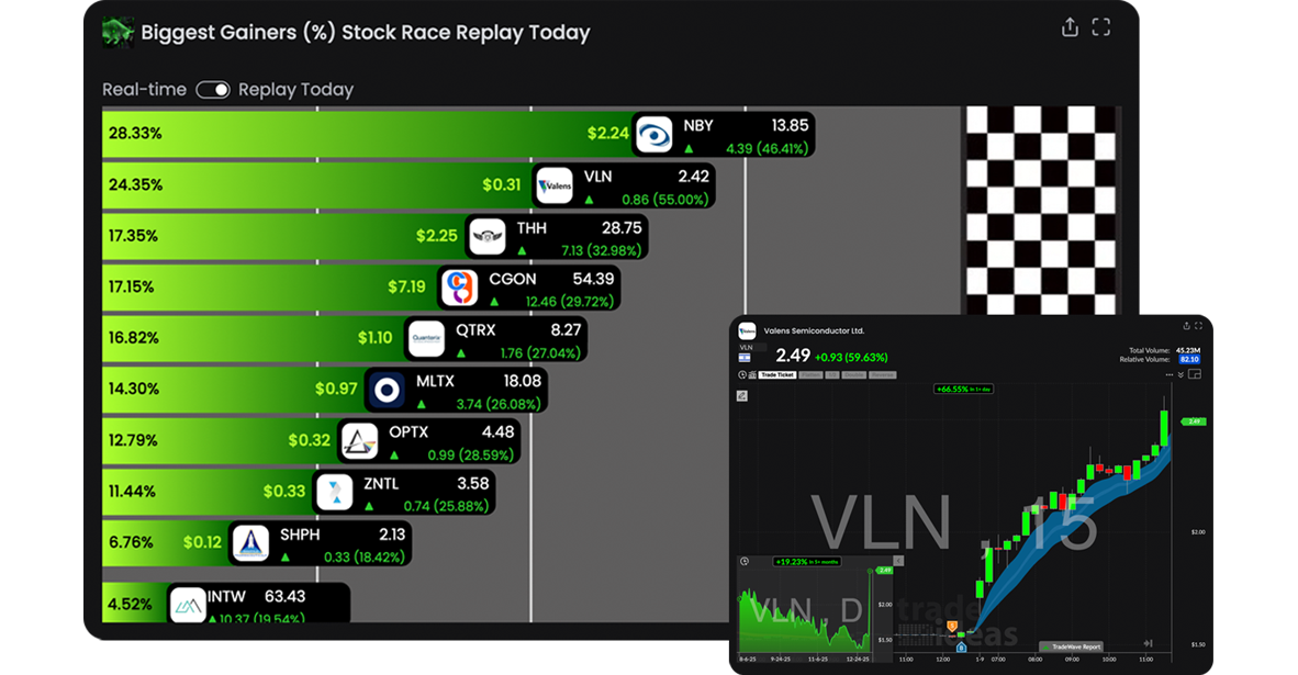 Momentum at a glance: Use Stock Races and Heatmaps to visualize leaders and laggards by momentum, price move, or volume in intuitive, color‑coded layouts.