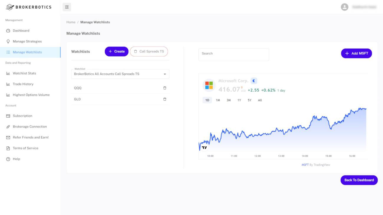 - Automated alerts on all BrokerBotics positions and even the rest of your options portfolio!